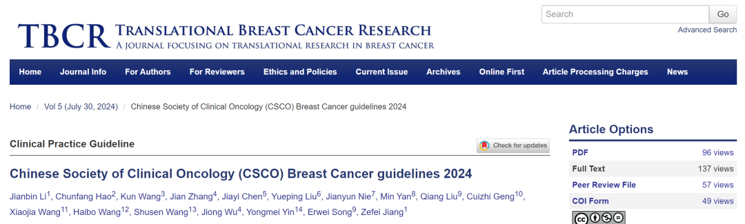 此次,我们荣幸地获得TBCR杂志全文发表CSCO BC指南英文版,能够让国际同行了解中国临床肿瘤学者的贡献。CSCO BC指南发布后,欧美、日本及各国专家在TBCR杂志上进行了非常积极的点评。特别是在免疫治疗领域,我们率先设立独立章节,探讨术前新辅助免疫治疗与晚期复发的免疫治疗策略,获得海外学者的高度认可。同时,一些具有“中国特色”的治疗方案,如针对HER2阳性乳腺癌的小分子TKI,包括徐兵河院士和我本人牵头开展的多中心研究,已经发表在国际刊物上,赢得国际同行的认可。