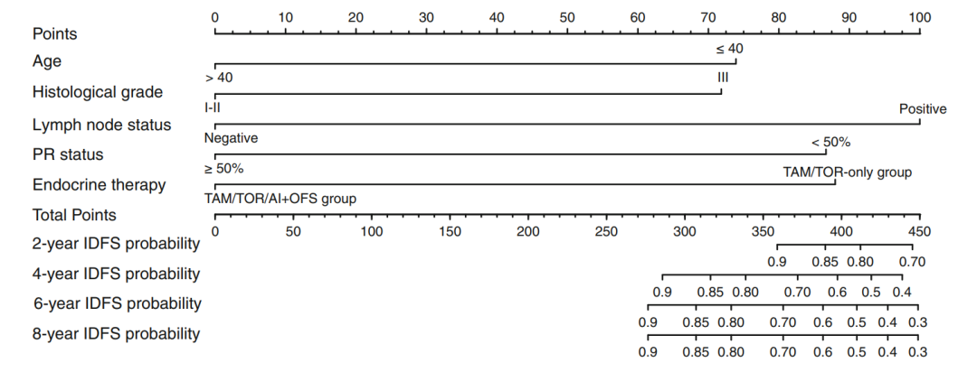 △中国真实世界研究用于HR+/HER2+绝经前患者预后判断的列线图