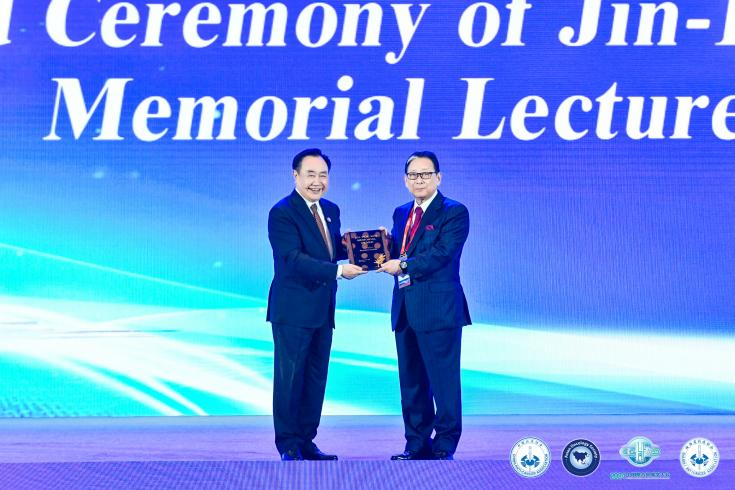 在本次开幕式上,还举行了一场意义非凡的颁奖典礼——Jin-Pok Kim(金进博)纪念奖。Han Kwang Yang教授首先登台,介绍了金进博纪念奖的由来,带领我们一同回顾了韩国胃癌外科学泰斗Jin-Pok Kim教授光辉而卓越的职业生涯。Jin-Pok Kim教授作为胃癌外科学领域的领航者,以其深厚的学术造诣和不懈的努力,为全球胃癌预防、诊断、治疗及研究事业树立了标杆。他不仅为提高胃癌患者的生存率和生活质量倾注了大量心血,更通过积极参与国际交流与合作,极大地推动了胃癌领域学术研究的进步和临床实践的革新。在学术探索的道路上,Jin-Pok Kim教授同样留下了浓墨重彩的一笔。他发表的多篇关于胃癌的重要论文和研究报告,不仅为胃癌的精准诊治提供了坚实的科学支撑,更为胃癌的预防和早期发现开辟了全新的视角和路径。因此,为纪念Jin-Pok Kim教授在胃肠肿瘤领域所做出的杰出贡献,本次大会特别设立了金进博纪念奖,旨在奖励那些为亚太国家和地区乃至全球抗癌事业做出突出贡献的专家。