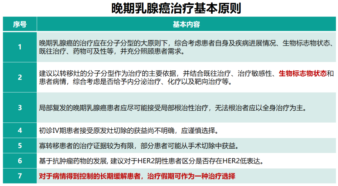 晚期乳腺癌治疗基本原则