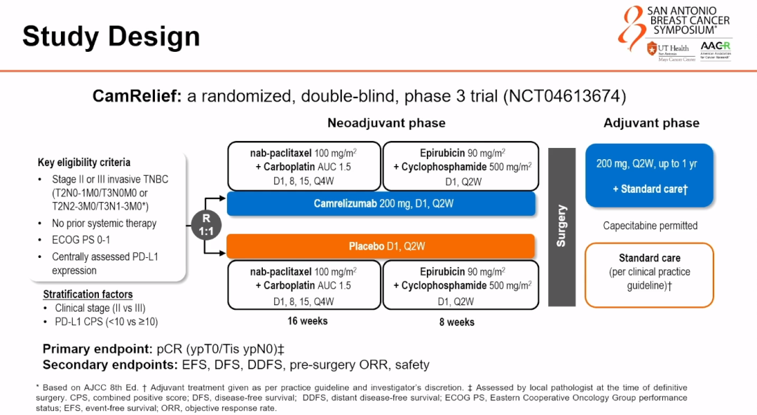 CamRelief研究:卡瑞利珠单抗联合化疗显著提高TNBC的pCR率