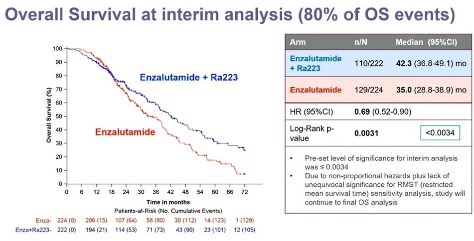[1]Silke Gillessen,et al.A randomized multicenter open label phase III trial comparing enzalutamide vs a combination of Radium-223(Ra223)and enzalutamide in asymptomatic or mildly symptomatic patients with bone metastatic castration-resistant prostate cancer(mCRPC):First results of EORTC-GUCG 1333/PEACE-3.ESMO 2024;LBA1