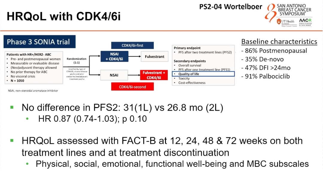 PS2-04——晚期乳腺癌中一线与二线CDK4/6抑制剂使用的健康相关生活质量:来自III期SONIA试验(BOOG 2017-03)的结果