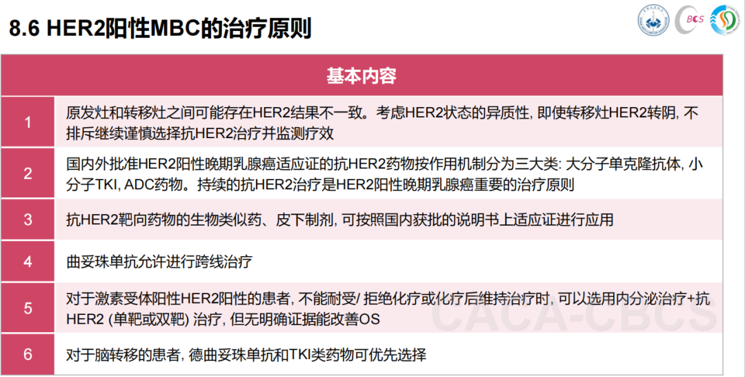 张剑教授:事实上,对于HER2阳性脑转移的乳腺癌患者,既往我们的治疗方式主要局限于TKI类药物的探索。乳腺癌领域的很多专家都在这一领域进行了探索,包括闫敏教授开展的PERMEATE研究等。但是ADC药物出现后,相关研究结果提示,无论是稳定性脑转移和还是活动性脑转移患者,德曲妥珠单抗治疗都产生了不错的疗效,今年ESMO大会上公布的DB-12的临床研究数据也进一步证实了德曲妥珠单抗的疗效。因此,在新版小红书HER2阳性晚期乳腺癌患者的治疗原则当中也提出,对于脑转移的患者,德曲妥珠单抗和TKI类药物可优先选择。治疗原则中第三点也修改为:抗HER2靶向药物的生物类似药、皮下制剂,可按照国内获批的说明书上适应证进行应用。