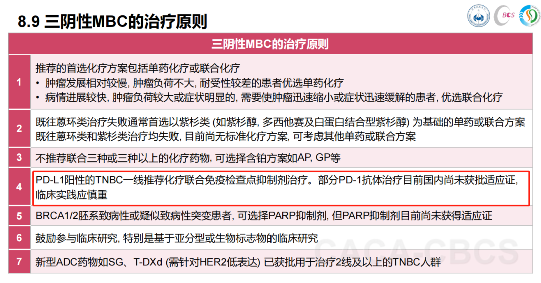 张剑教授:三阴性乳腺癌作为乳腺癌中最具挑战性的亚型,自然吸引了广泛的关注。在2025版小红书的更新中,我们建议“PD-L1阳性的TNBC一线推荐化疗联合免疫检查点抑制剂治疗”。然而,值得注意的是,不同免疫检查点抑制剂的伴随诊断标准存在差异。例如,帕博利珠单抗与化疗的联合应用获批人群为CPS评分≥10的患者,而特瑞普利单抗联合化疗则特定针对PD-L1阳性(CPS≥1)的患者群体。
