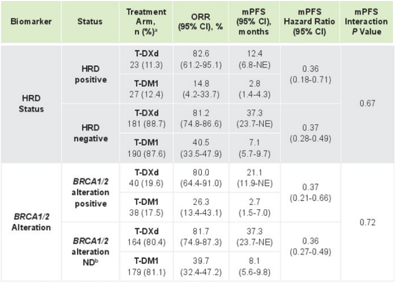 △不同HRD状态和BRCA1/2突变T-DXd和T-DM1治疗的ORR和PFS