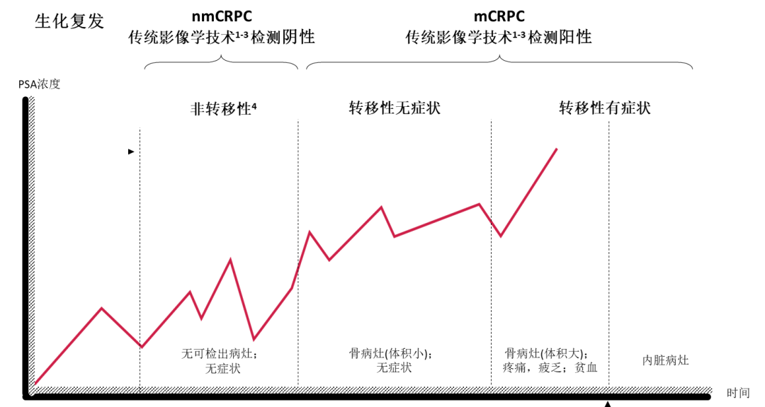 前列腺癌生化复发(BCR)是根治性治疗后发生PSA升高,而缺乏影像学转移证据的阶段。BCR是局部复发和远处转移的“前兆”,增加前列腺癌相关死亡率。在局部治疗后中位20月,53%的患者会发生BCR[1]。目前不同指南对BCR的定义有所差异。NCCN指南定义为根治性治疗后:PSA没有降至不可检测水平;或PSA降低至不可检测水平,但连续两次或以上升高至可测量水平;或由于PSA代谢或残余良性组织,导致持续低水平的PSA检测出[2]。EAU指南则定义为:根治术后4-8周PSA在可测范围内,PSA降低至不可检测水平后再次升高到0.4 ng/ml;对于放疗患者BCR则是PSA升高超过最低值>2 ng/ml[3]。