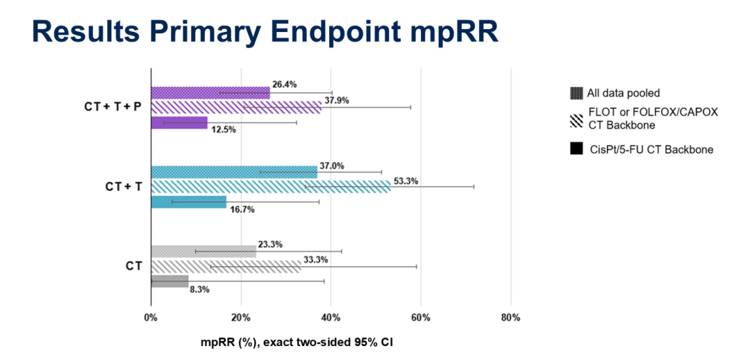 Dr.Anna Dorothea Wagner:This was an open-label,randomized phase 2 trial with a 1:2:2 randomization.The study included patients from 37 centers across Europe,South Korea,and Singapore.The primary endpoint was the major pathologic response rate,which was independently assessed by two senior pathologists,with a third expert reviewing discrepancies.Secondary endpoints included progression-free survival and overall survival.