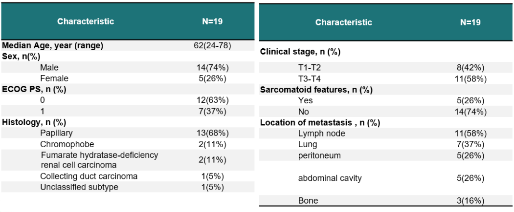 研究主要入组标准为:病理学确诊的转移性/不可切除nccRCC患者;年龄为18-80岁;既往未接受过包括化疗、靶向治疗、免疫治疗在内的全身性抗癌治疗;ECOG PS 0-1;具有≥1个可测量病灶;预期生存时间>3个月。