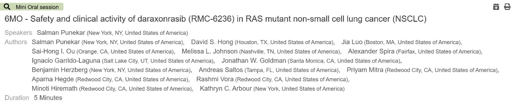 RMC-6236在RAS突变非小细胞肺癌患者中的安全性及抗肿瘤活性
