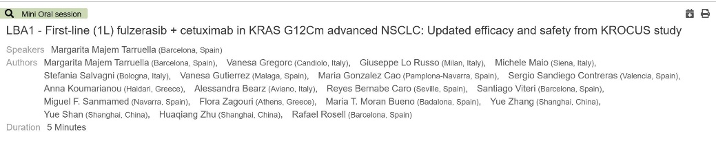 氟泽雷塞联合西妥单抗在KRAS G12C突变的晚期非小细胞肺癌患者的疗效及安全性:KROCUS研究的疗效及安全性更新