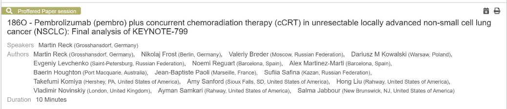 在KeyNote-799研究中,对于不可手术切除的III期非小细胞肺癌患者,帕博利珠单抗联合同步放化疗的ORR为71.4%(队列A:非鳞癌和鳞癌)和74.5%(队列b非鳞癌)。本研究报道了经过5年的随访数据。