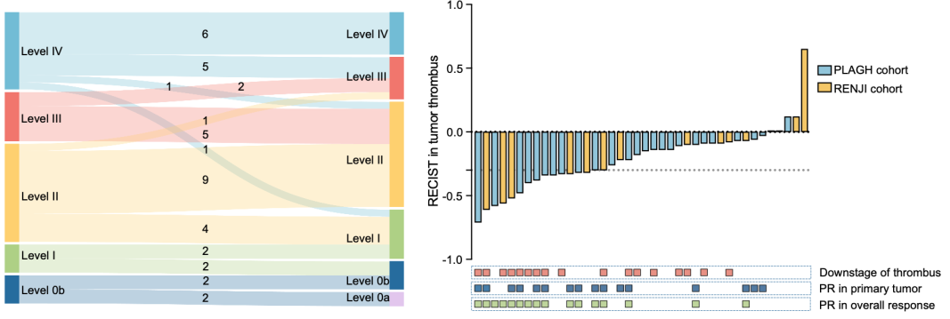 纳入分析的40例患者中,基线时分别有4例(10%)、4例(10%)、14例(35%)、7例(17.5%)和11例(27.5%)存在0级、Ⅰ级、Ⅱ级、Ⅲ级和Ⅳ级瘤栓。研究结果显示: