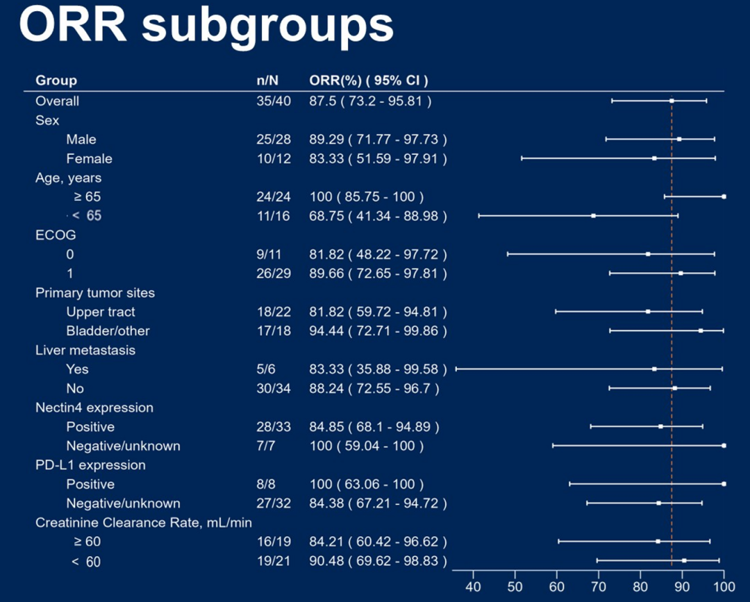 《肿瘤瞭望》:该研究确认前的ORR就高达87.5%,并且亚组分析中的肝转移、Nectin-4阴性人群的ORR均较高。这为临床带来哪些启示?如何优选获益人群?
