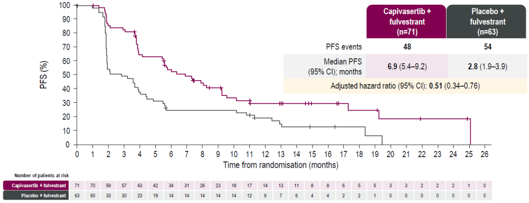△CAPItello-291研究中者评估的总体人群和AKT通路改变患者的PFS