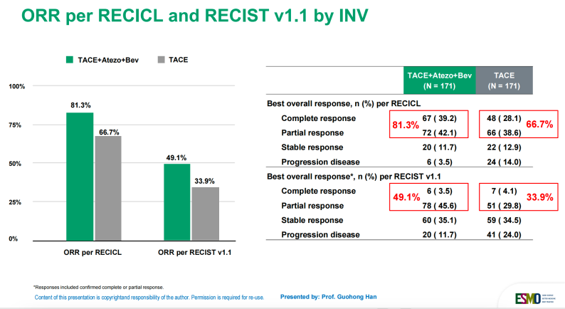 研究的主要终点包括:TACE-PFS(即从随机分组到研究者评估的TACE不可治疗进展或TACE抵抗或全因死亡的时间),以及OS。次要终点包括:RECIST v1.1评估的PFS,RECICL评估的至TACE不可治疗进展时间(TTUP)、至疾病进展时间(TTP)、至肝外转移(EHS)时间,以及RECICL、RECIST v1.1评估的客观缓解率(ORR)、缓解持续时间(DOR)等。