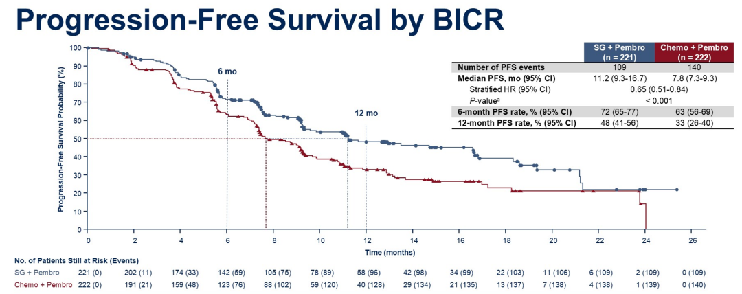 此外,我们还需关注内脏、脑转移等远处转移病灶的缓解情况。ASCENT-04研究均纳入了这些患者,但目前尚未公布相关亚组数据。从既往其他研究及SG药物特征来看,其载荷SN-38不仅活性高,而且可能也具备通过血脑屏障的能力。因此,在内脏或脑转移疾病控制方面的疗效应该也不会差。