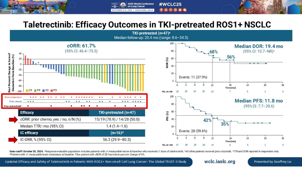 [2]G.Liu,et al.Updated Efficacy and Safety of Taletrectinib in Patients With ROS1+Non-Small Cell Lung Cancer:The Global TRUST-II Study.2025WCLC.MA02.02.