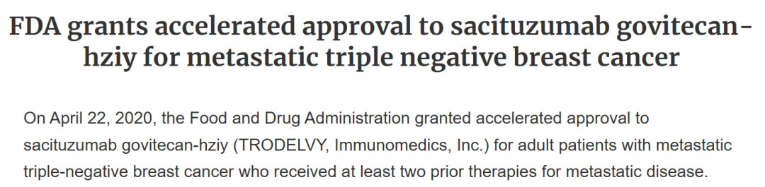 基于ASCENT研究,2021年4月,FDA正式批准SG用于TNBC二线治疗,为临床带来了全新的标准治疗选择。