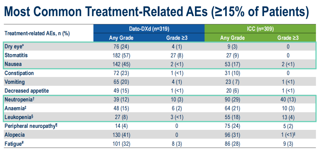 表2.TROPION-Breast02研究常见TRAEs发生率