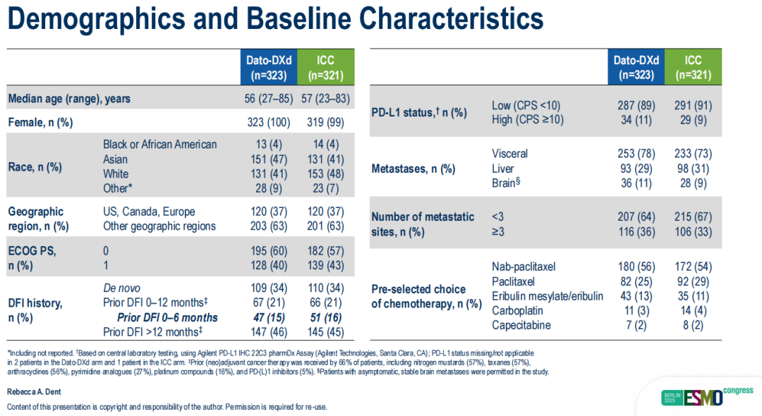 表1.TROPION-Breast02研究入组患者基线特征,纳入约15%无病间期<6个月患者