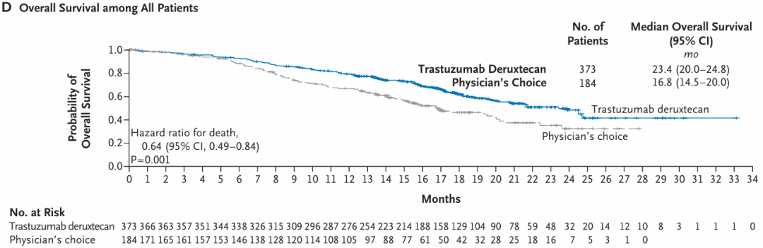 这项研究首次在HER2低表达的晚期乳腺癌患者中证实了靶向HER2的ADC能带来显著的生存获益,确立了T-DXd作为HER2低表达患者的二线标准治疗方案。