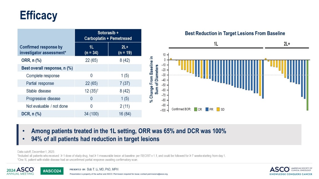 代表性研究为KRYSTAL-7研究以及LOXO-RAS-20001和SUNRAY-01研究的汇总数据。