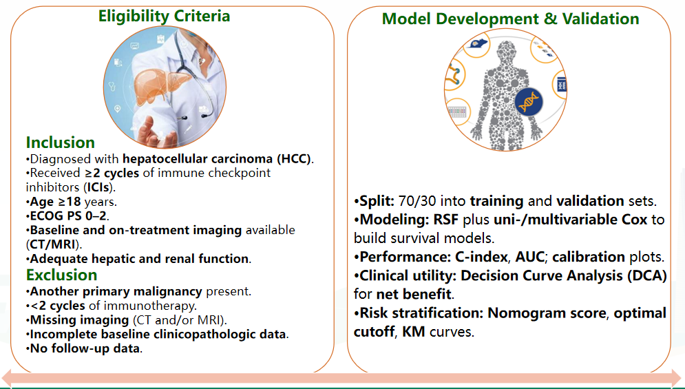 本研究旨在开发一种计算图表,用于有效区分适合接受免疫治疗的肝细胞癌(HCC)患者,并对其风险水平进行分类。