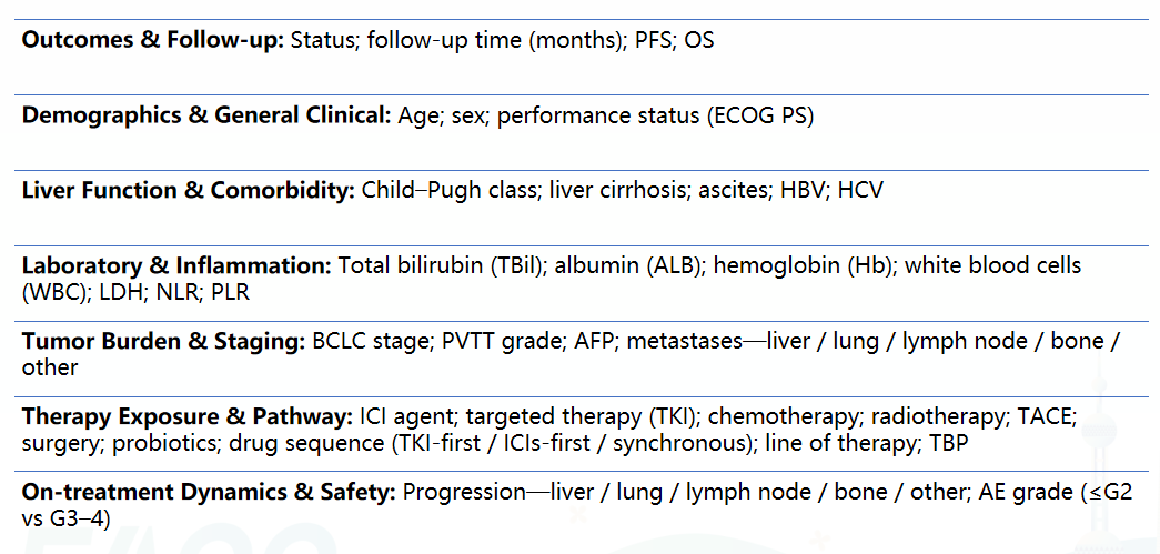图1.肝癌免疫治疗预测模型纳入的各项参数