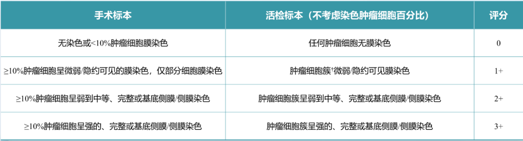 △泛实体瘤HER2 IHC判读评分标准。注:†肿瘤细胞簇定义为≥5个成簇细胞