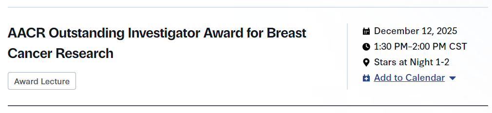一场颁奖讲座:AACR乳腺癌研究杰出研究者奖