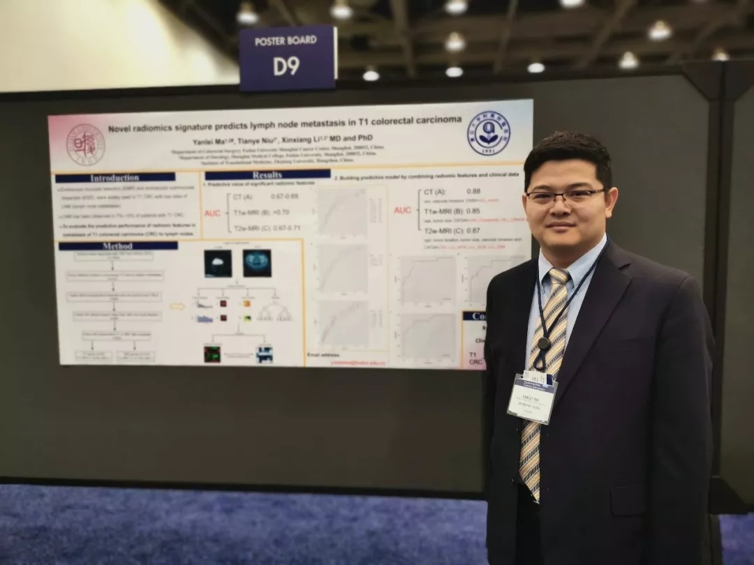 T1 期结直肠癌发病率逐年上升,其中淋巴结转移为10%-15%,其中绝大部分的患者是外科手术后切片标本证实,少数则是在肠镜下息肉摘除时发现。术前如果能够准确判断T1期肠癌发生淋巴结转移风险的高低将有助于主刀医生对手术方式的选择。目前,主要通过检测局部切除术后标本的粘膜下浸润深度、是否有淋巴脉管侵犯,以及病理类型是否为低分化来判断淋巴结转移风险高低,从而判断是否进一步采取补救性的根治术。近年来大数据技术与医学影像辅助诊断的有机融合产生了新的影像组学方法,其通过从影像中提取海量特征来量化肿瘤等重大疾病,可以有效解决肿瘤异质性难以定量评估的问题,具有重要的临床价值。影像组学技术来源于计算机辅助诊断(computer aided diagnosis,CAD),目前已经发展成为融合影像、基因、临床等信息的辅助诊断、分析和预测的方法。本研究通过回顾性分析我们临床中心225例T1期结直肠癌患者伴或不伴淋巴结转移两组患者的术前影像组学特征(CT/T1w-MRI/ T2w-MRI)差异,结合术前相关的临床病理资料,构建预测淋巴结转移的预测风险模型。结果显示目前构建的模型预测淋术前巴结转移率均在85%以上,该研究表明,联合术前影像组学特征及相关临床病理资料,可以构建一个良好的预测T1 期结直肠癌淋巴结转移的预测风险模型,从而在一定程度上应用于指导临床决策。