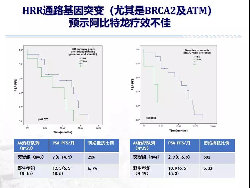 董教授:尽管说我们使用的时间也不长,但在这一年中,实际上我们也发现了很多新的东西。第一,最早的时候,我们完全是用国际上的数据库来比对我们自己病人的数据,我们以为这是最标准的,但实际上这个标准在我们早期用下来发现并不是标准。为什么呢?第一,我们检测发现所谓的致病基因的突变非常少,同时我们也发现了许多临床意义不明的突变,最早的时候我们把这部分病人的突变忽略掉了,实际上这很难解释临床进展。我们后面再去分析,与我们的检测和分析部门一起,并结合临床情况,再综合一些新的国际上的研究进展之后发现:本来我们把它归结到临床意义不明的一些突变,实际上它是有功能的。我们根据新的分析结果再用上相应的治疗之后,我们真是本来把它归结在没有临床意义的这一部分突变它具有重要的临床指导价值。通过这件事情我们发现,每种肿瘤均可能存在种族的差异,在目前的国际基因突变数据库中并没有中国人mCRPC的数据。所以我们已经在整理中国多中心临床研究的成果,我们希望通过我们国人自己的数据去发现我们中国人的发病特征,让他它指导后续病人的治疗。这是一个很重要的发现。