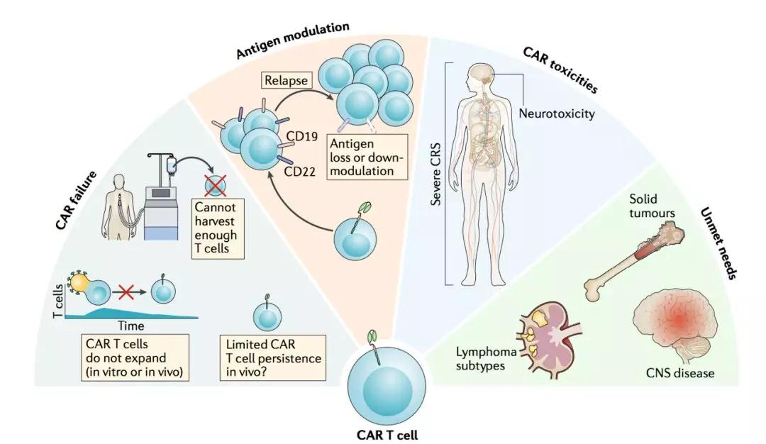 图 1 | CAR T细胞治疗后无法获得持久缓解的因素和局限性.
