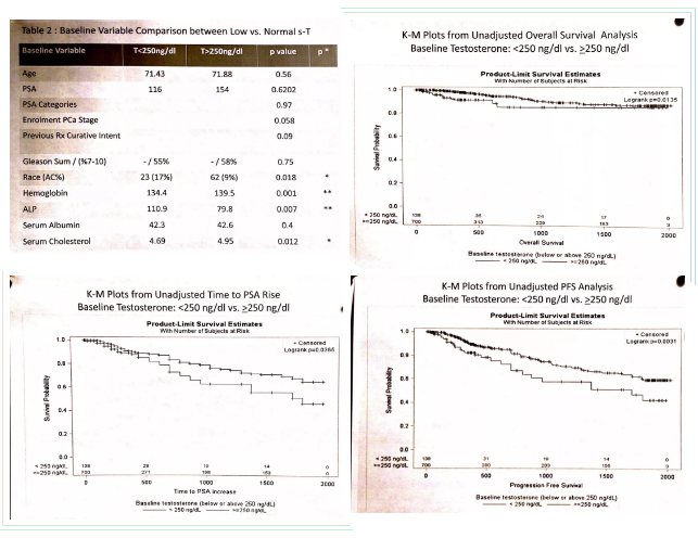 Private Practice, Dept. of Urology, London, United Kingdom, Baseline serum testosterone - does it influence androgen deprivation therapy outcomes in hormone na ve advanced prostate cancer patients 2019 EAU abstracts 1039