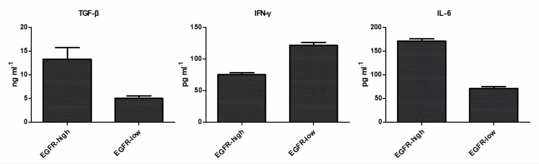 图5 EGFR低表达食管鳞癌细胞可上调IFN-γ,同时下调TGF-β和IL-6