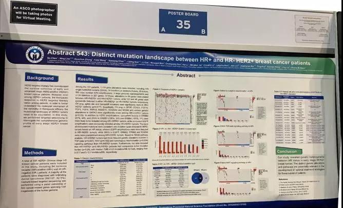 广东省人民医院乳腺科廖宁教授团队本次有2项研究成果入选ASCO 2019年会。其中第1项研究(Poster 543)为Distinct mutation landscape between HR+ and HR- HER2+ breast cancer patients,第2项研究(Poster 579)为Correlation between mutation landscape and clinical outcomes of neoadjuvant therapy in HER2-positive breast cancer patients。这两项研究成果,提供了中国HER2阳性乳腺癌患者的重要体细胞突变特征,为后续HER2阳性乳腺癌患者的个体化治疗提供理论依据。