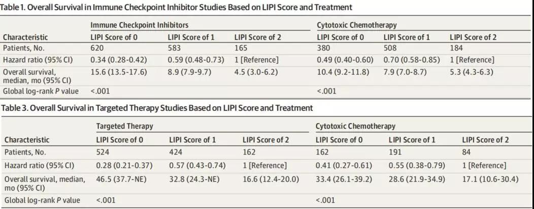 导读:由dNLR和LDH衍生的肺免疫预后指数(LIPI)评分能否为转移性非小细胞肺癌(mNSCLC)患者的药物治疗提供预后信息?7月25日,JAMA oncology在线发表的一项汇总分析提示,无论免疫检测点抑制剂治疗、靶向治疗还是细胞毒化疗,LIPI评分与患者OS和PFS均有相关性。