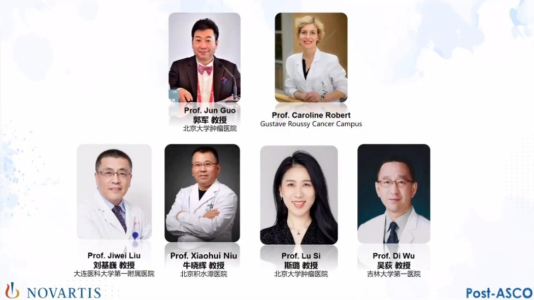 编者按:刚刚结束的2020年ASCO会议上,黑色素瘤领域研究新进展、新药物百花齐放,靶向和免疫治疗研究数据层出不穷,不仅为黑色素瘤患者带来生存获益的曙光,也丰富了临床治疗黑色素瘤的武器。2020年6月9日,“Post-ASCO大咖面对面——黑色素瘤治疗新进展”网络会议在线上召开,中国黑色素瘤领域的顶级专家:北京大学肿瘤医院郭军教授、大连医科大学附属第一医院刘基巍教授、北京积水潭医院牛晓辉教授、北京大学肿瘤医院斯璐教授、吉林大学第一医院吴荻教授,与来自法国GustaveRoussy癌症研究所,负责过多项靶向、免疫治疗全球临床研究的CarolineRobert教授展开巅峰对话,为我们分享黑色素瘤的综合治疗策略,分析ASCO黑色素瘤领域的治疗进展。