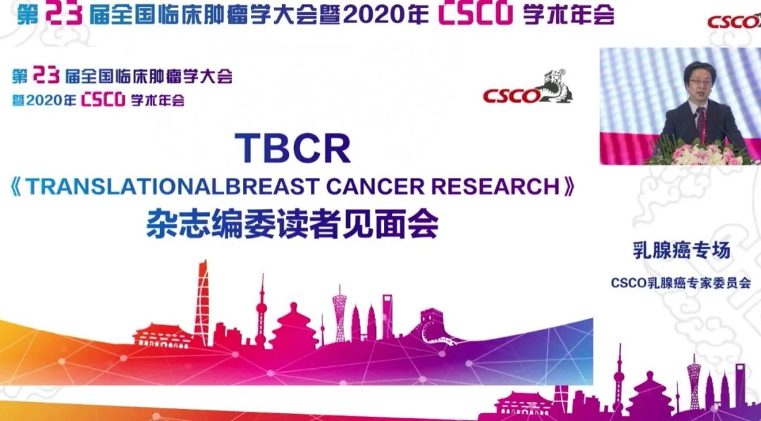 9月21日下午,第23届全国临床肿瘤学大会暨2020年CSCO学术年会举办乳腺癌专场。乳腺癌专场精心设计,亮点颇多,包括不同分子分型乳腺癌患者的个体化治疗讨论,《TRANSLATIONAL BREAST CANCER RESEARCH》(TBCR)杂志创刊以来首场编委读者见面会。TBCR是中国学者创办的英文期刊,今年四月创刊后,受到国内和国际上同道的欢迎。在TBCR读者见面会环节,TBCR编委和读者齐聚一堂,现场剖释TBCR期刊的使命和愿景。
