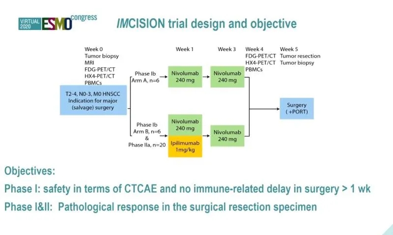 IMCISION试验:纳武单抗和纳武单抗联合伊匹木单抗新辅助治疗头颈部鳞状细胞癌患者诱导(接近)完全缓解(摘要号:LBA40)