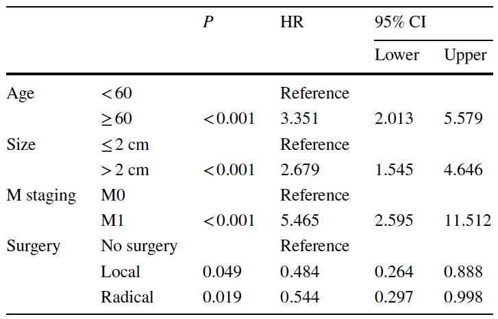 表3. SEER数据库中GNET临床病理特征的多变量分析