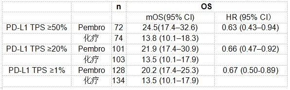 背景:在KEYNOTE-042全球研究(NCT02220894)和来自KEYNOTE-042中国亚组和中国扩展队列 (NCT03850444)的中国患者分析中,Pembro单药治疗PD-L1阳性(TPS≥1%)局部晚期/转移性非小细胞肺癌(无可靶向治疗的EGFR/ALK变异),OS较化疗组明显改善。经过17个月额外随访后,我们对中国患者进行了一项新的分析。
