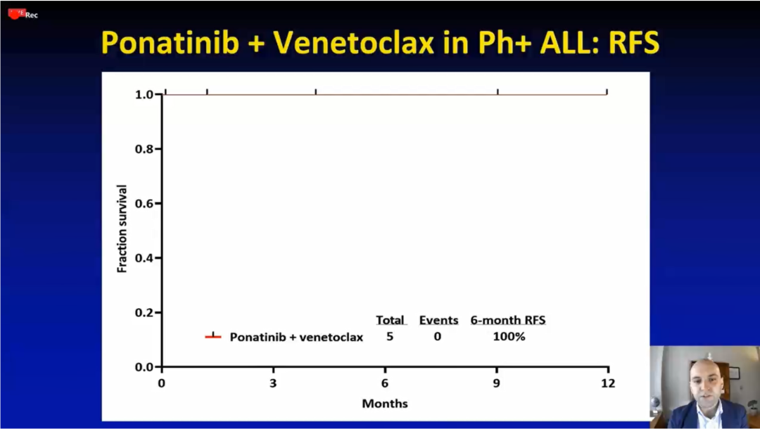 在患有R/R Ph + ALL的患者的强化预治疗人群中,普纳替尼联合维奈克拉和地塞米松的无化疗口服联合安全且具有良好的早期疗效,每日接受维奈克拉 800 mg的所有3例患者均达到了CMR。尚未达到MTD,研究继续进行。