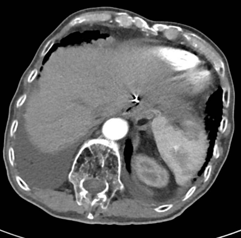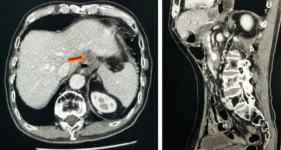术后恢复:术后腹部CT提示:吻合口区可见引流管影,其内可见造影剂影。考虑吻合口瘘,予以禁食,保持引流管通畅,予以抗炎、抑酸护胃、营养支持等对症处理。症状好转,进食恢复后好转出院。
