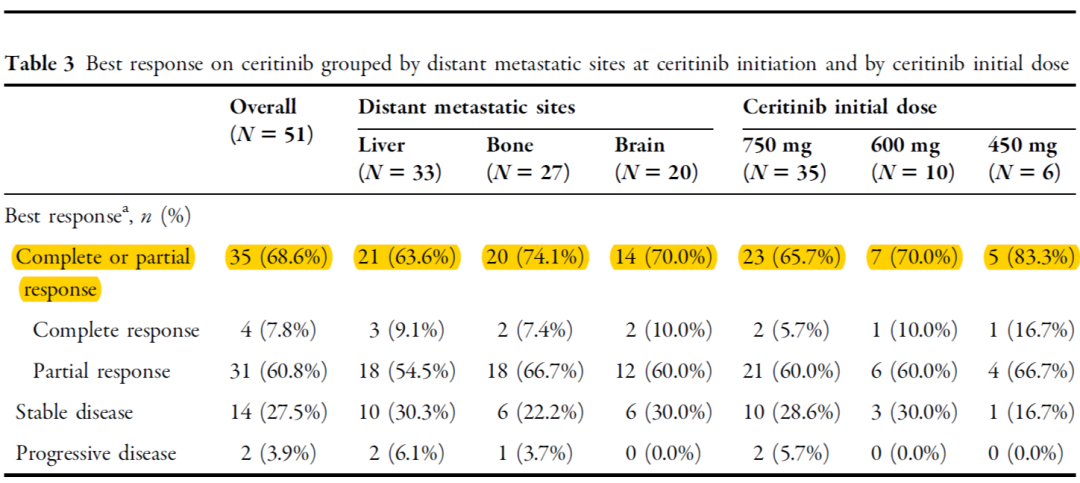 图4. 美国一项真实世界研究中塞瑞替尼对不同转移灶疗效