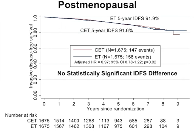 绝经后人群CET组与ET组5y-iDFS对比