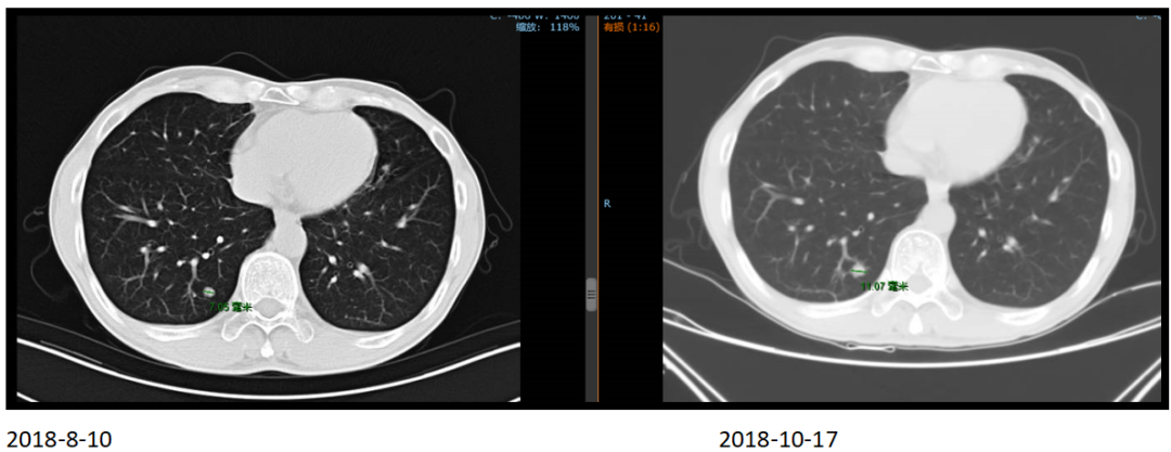 2018年8月10日复查胸部CT发现双肺多发小结节,遂定期观察随访。