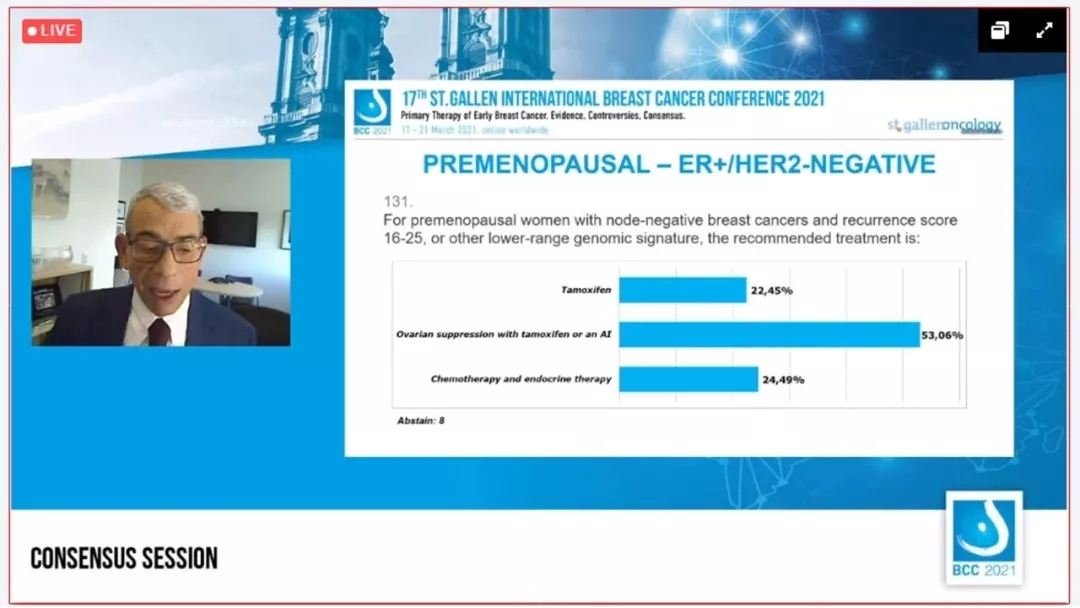 编者按:第十七届圣加伦国际乳腺癌大会(SG-BCC 2021)于欧洲中部时间(CET)2021年3月17日~3月21日以线上会议形式召开。《肿瘤瞭望》特邀两位国内肿瘤大咖纵览SG-BCC大会热点,分析HR阳性早期乳腺癌亮点研究,探讨共识专家投票结果。