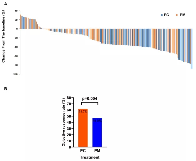 结论:对于初治的驱动基因阴性晚期非小细胞肺癌患者来说,一线治疗应首选帕博利珠单抗联合化疗而非帕博利珠单抗单药。
